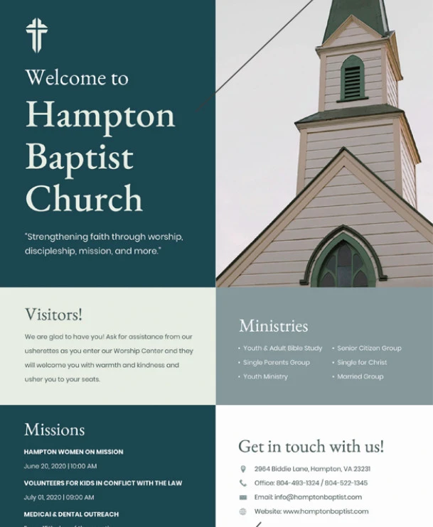 - Contact information: Provide contact information for the church office, staff members, and key volunteers for any questions or inquiries.