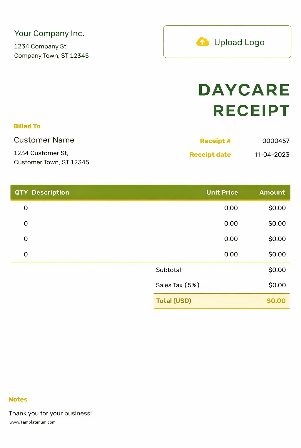 - Use a professional template: Utilize a receipt template or software to create a professional-looking receipt that reflects your daycare brand.